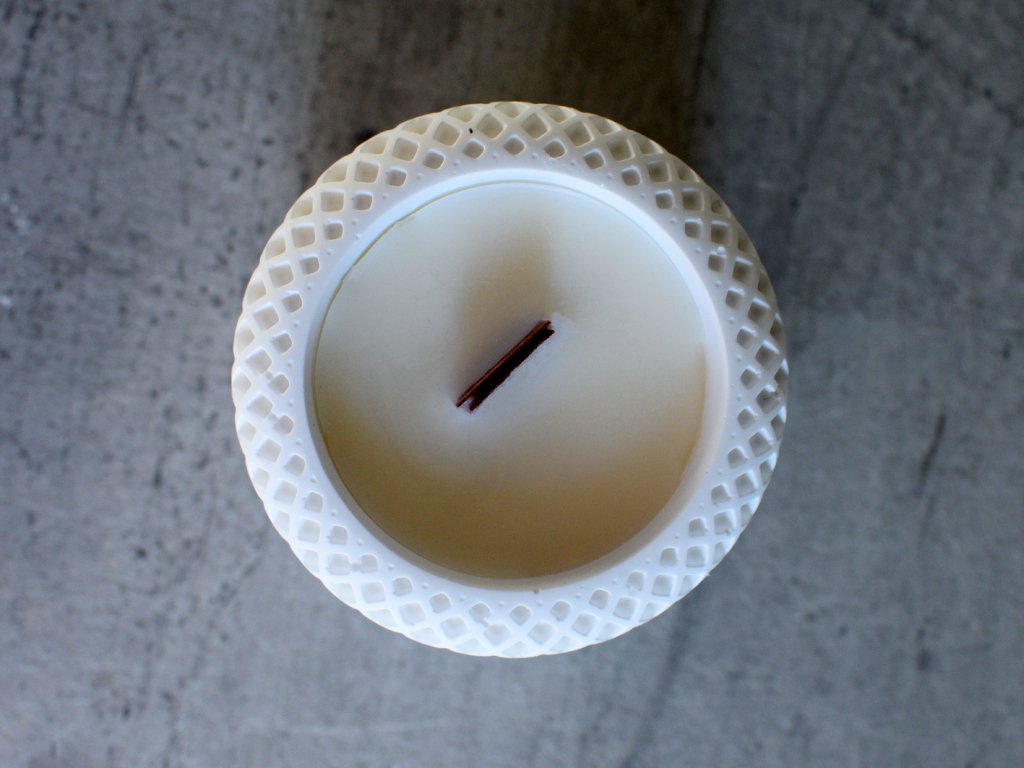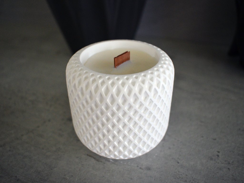 Sójová svíčka s dekorem mřížky ve tvaru káry