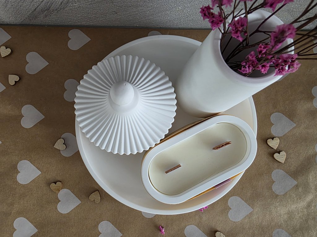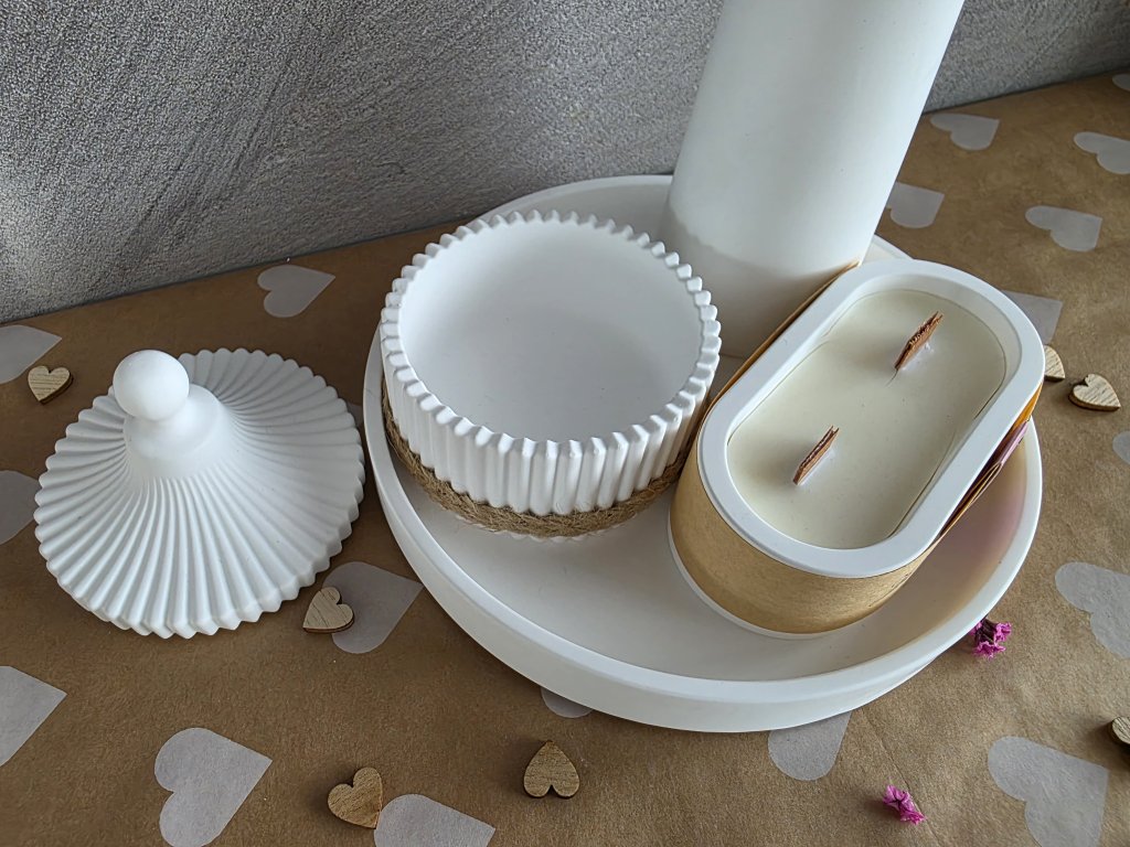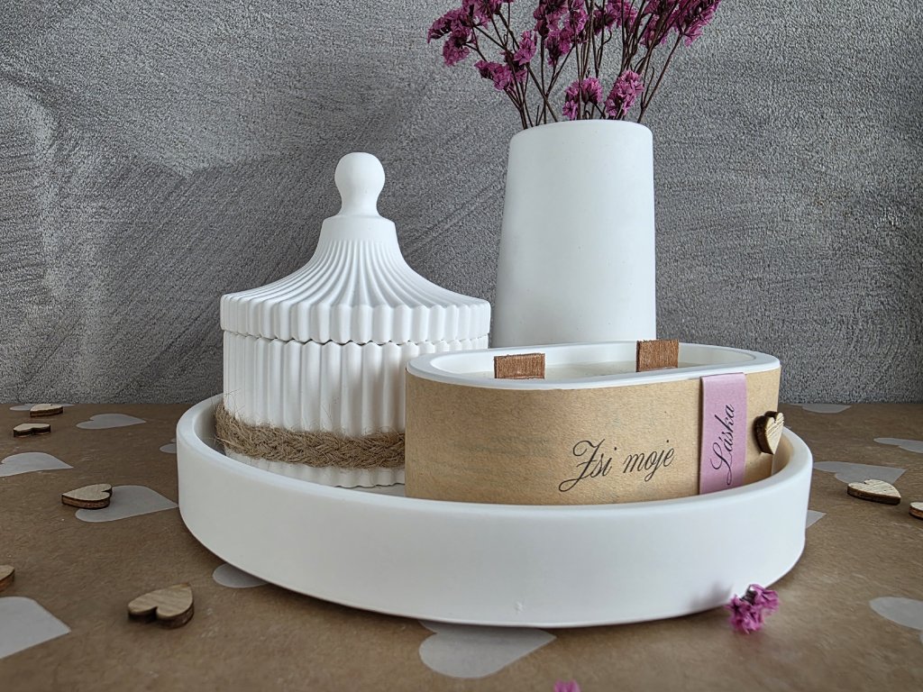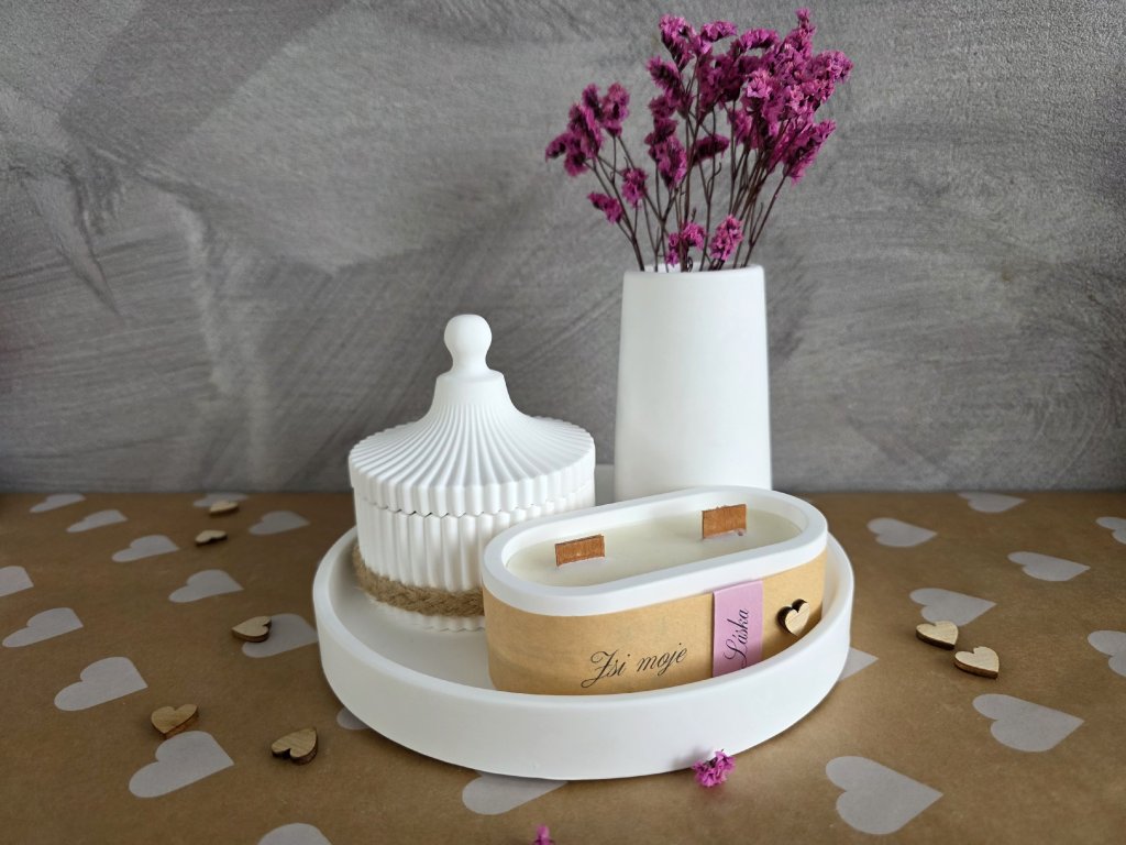 Sada tácu, sójové svíčky, vázy a šperkovnice + sušená limonka do vázičky ZDARMA (viz. foto)